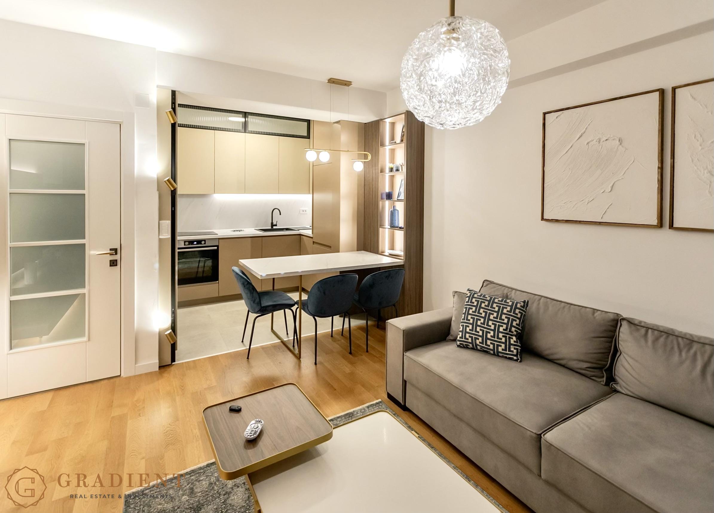 U dugoročan najam nudimo luksuzno opremljen jednosoban stan u jednom od najtraženijih djelova Tivta – Seljanovu. Stan površine 44 m² smješten je na trećem spratu nove stambene zgrade namješten je elegantno i nudi obilje prirodne svjetlosti zahvaljujući jugozapadnoj orijentaciji.