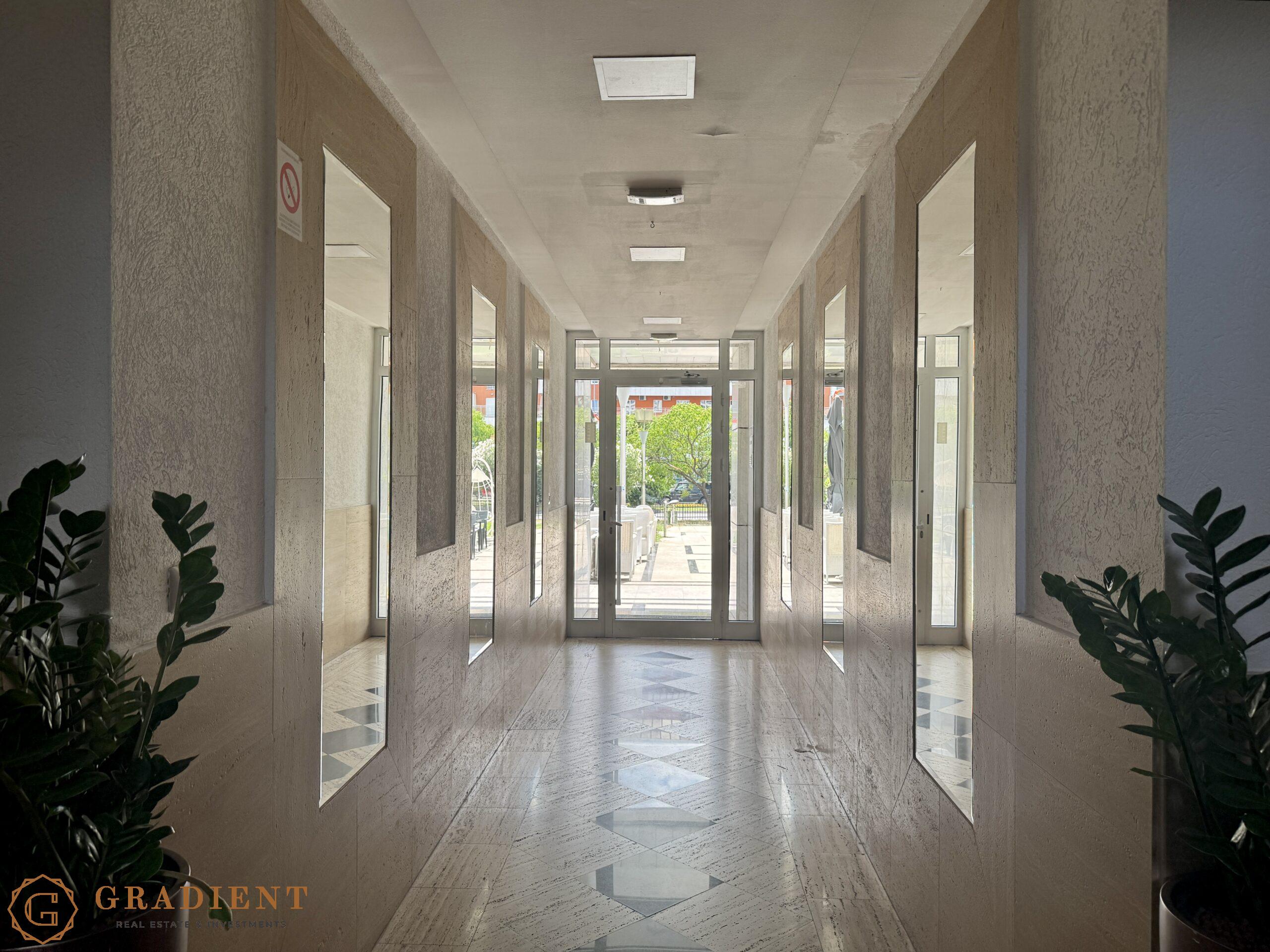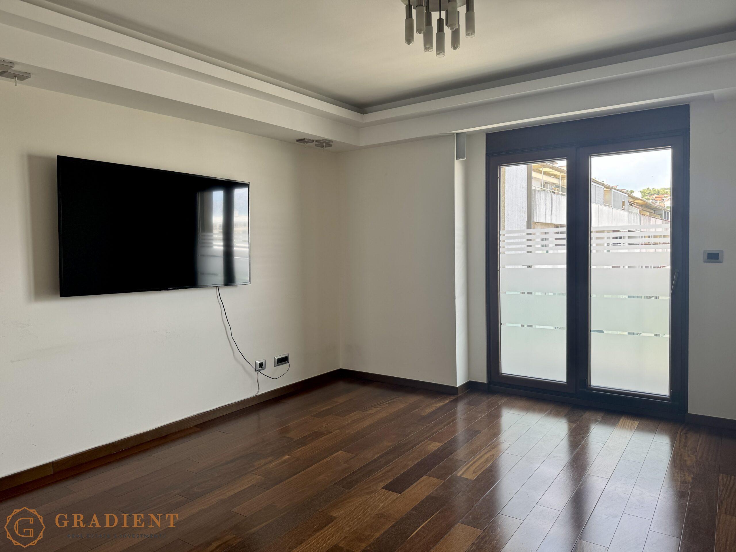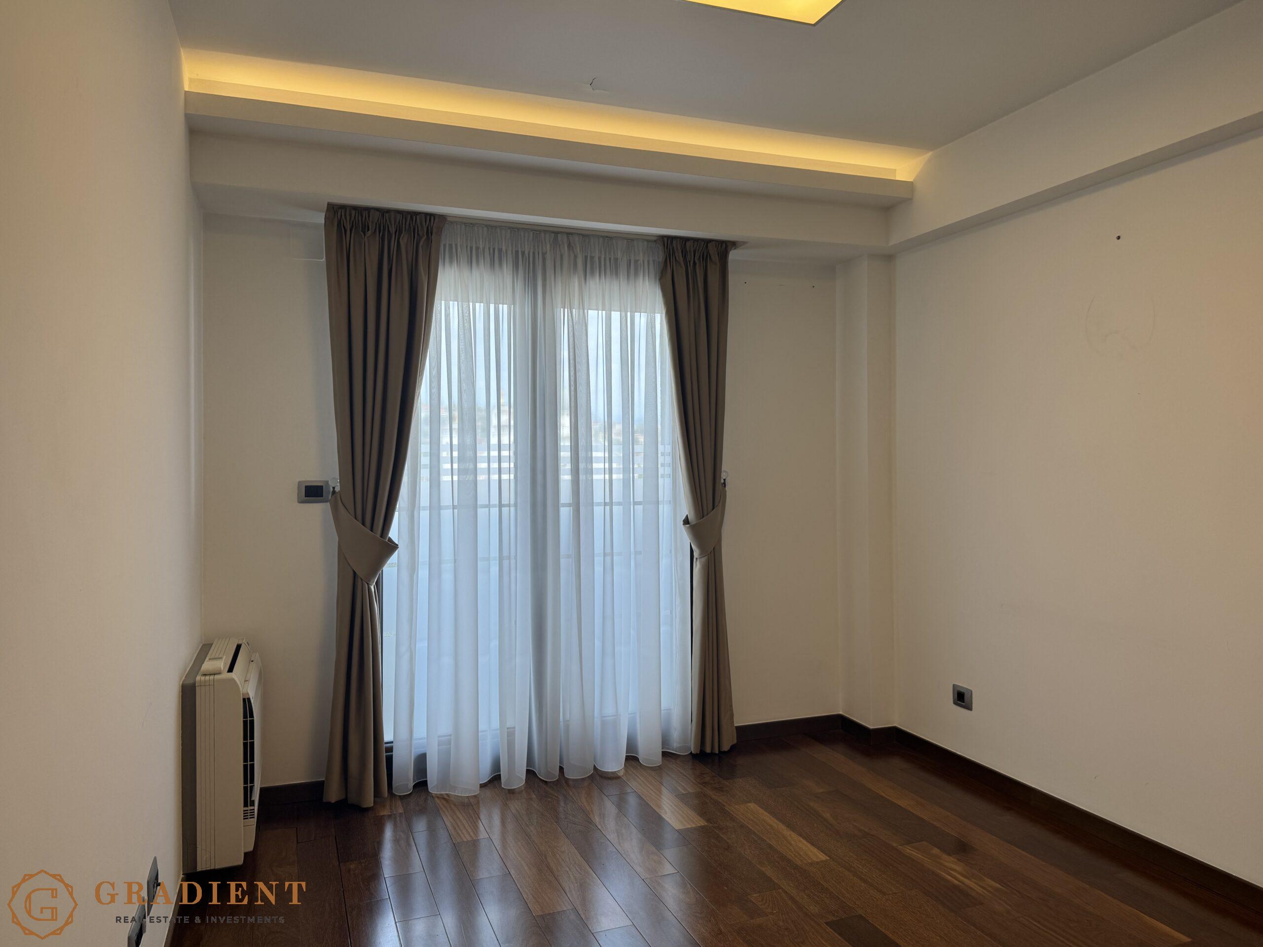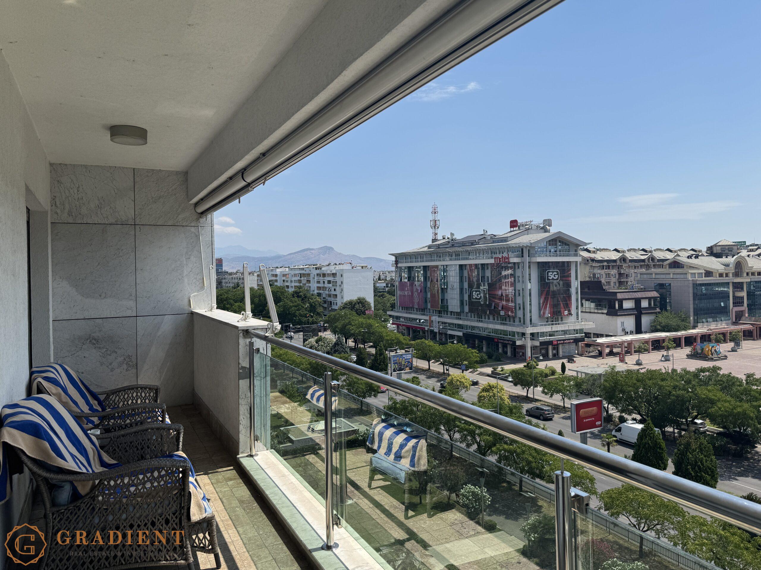 A rare opportunity – spacious and elegantly designed two-bedroom apartment of 142 m², located on the sixth floor of the prestigious Normal Company building on Bulevar Svetog Petra Cetinjskog.
