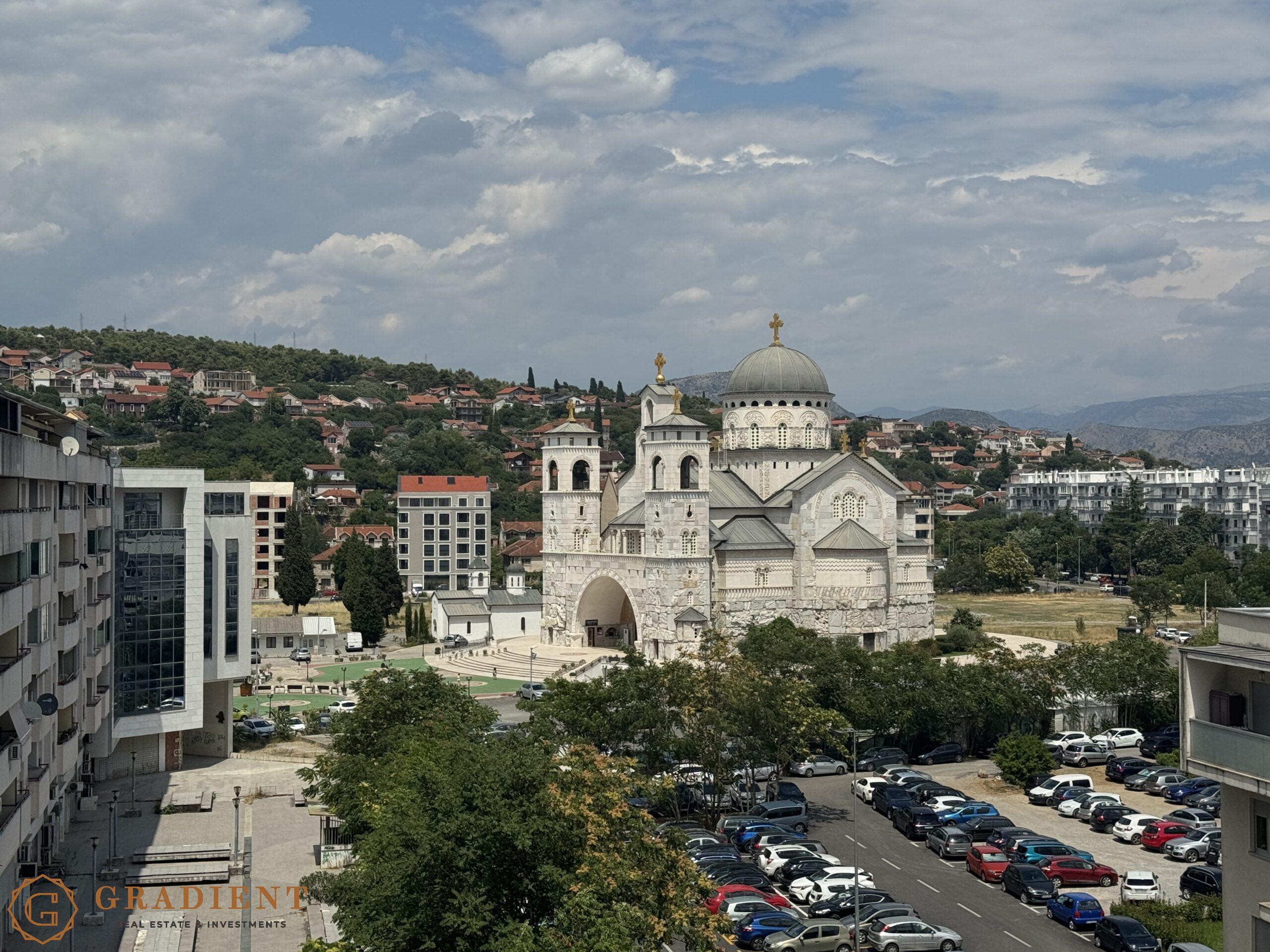 Thoughtfully designed for comfortable urban living, the apartment is bathed in natural light thanks to its dual orientation – south and north. The living area offers an unobstructed view of the boulevard, while both bedrooms boast a stunning view of the Church of the Resurrection – one of the architectural landmarks of modern Podgorica.