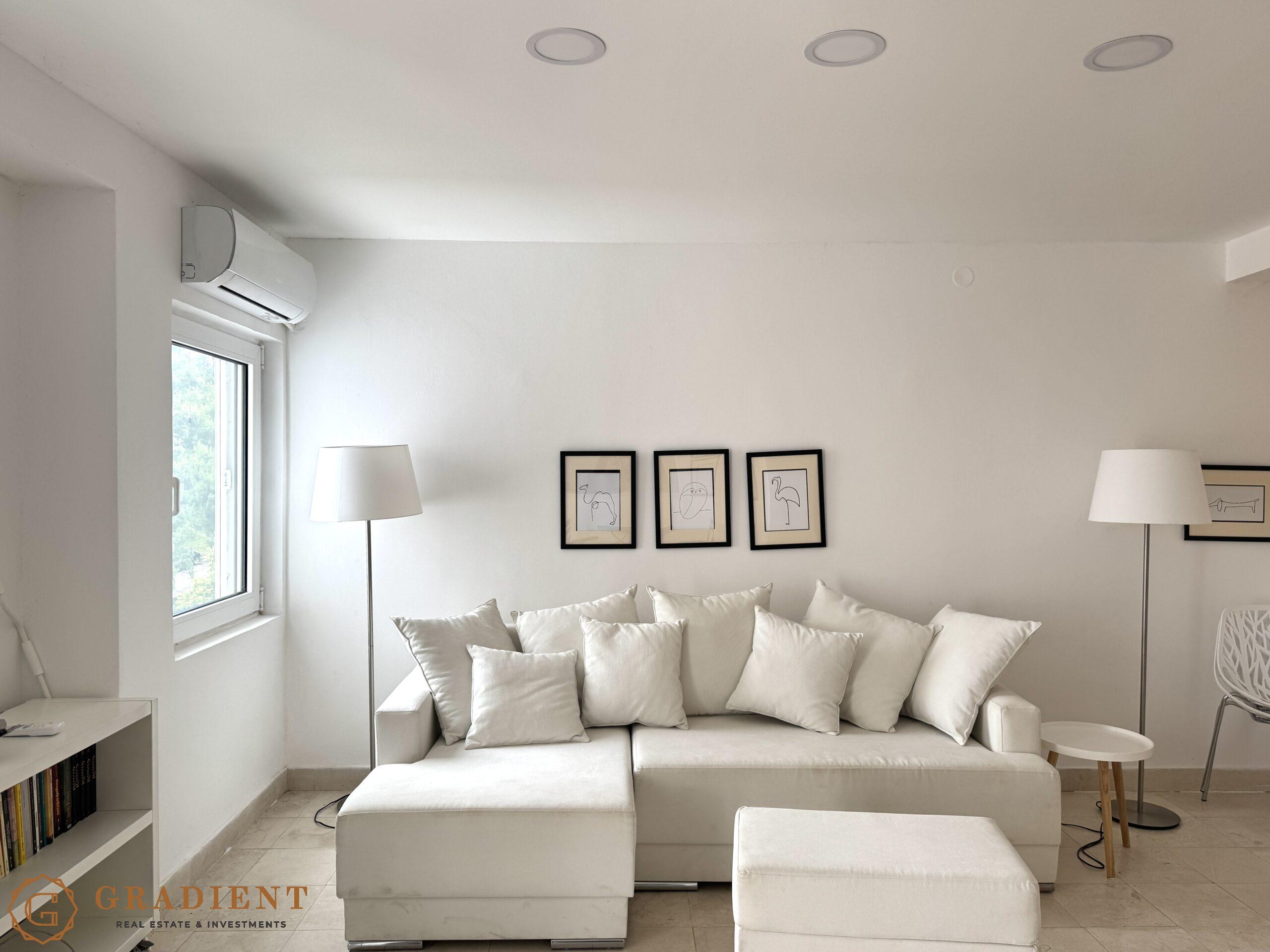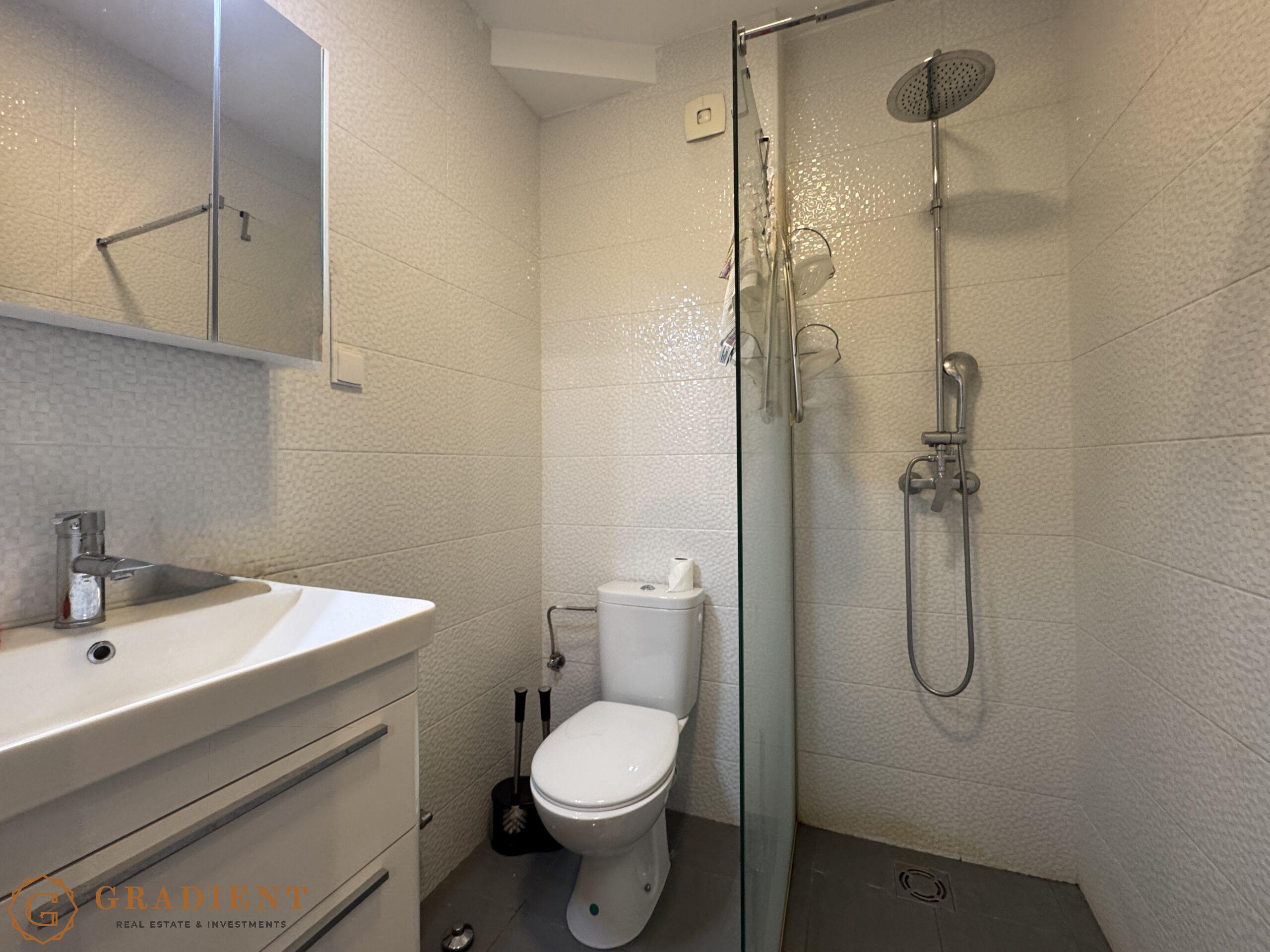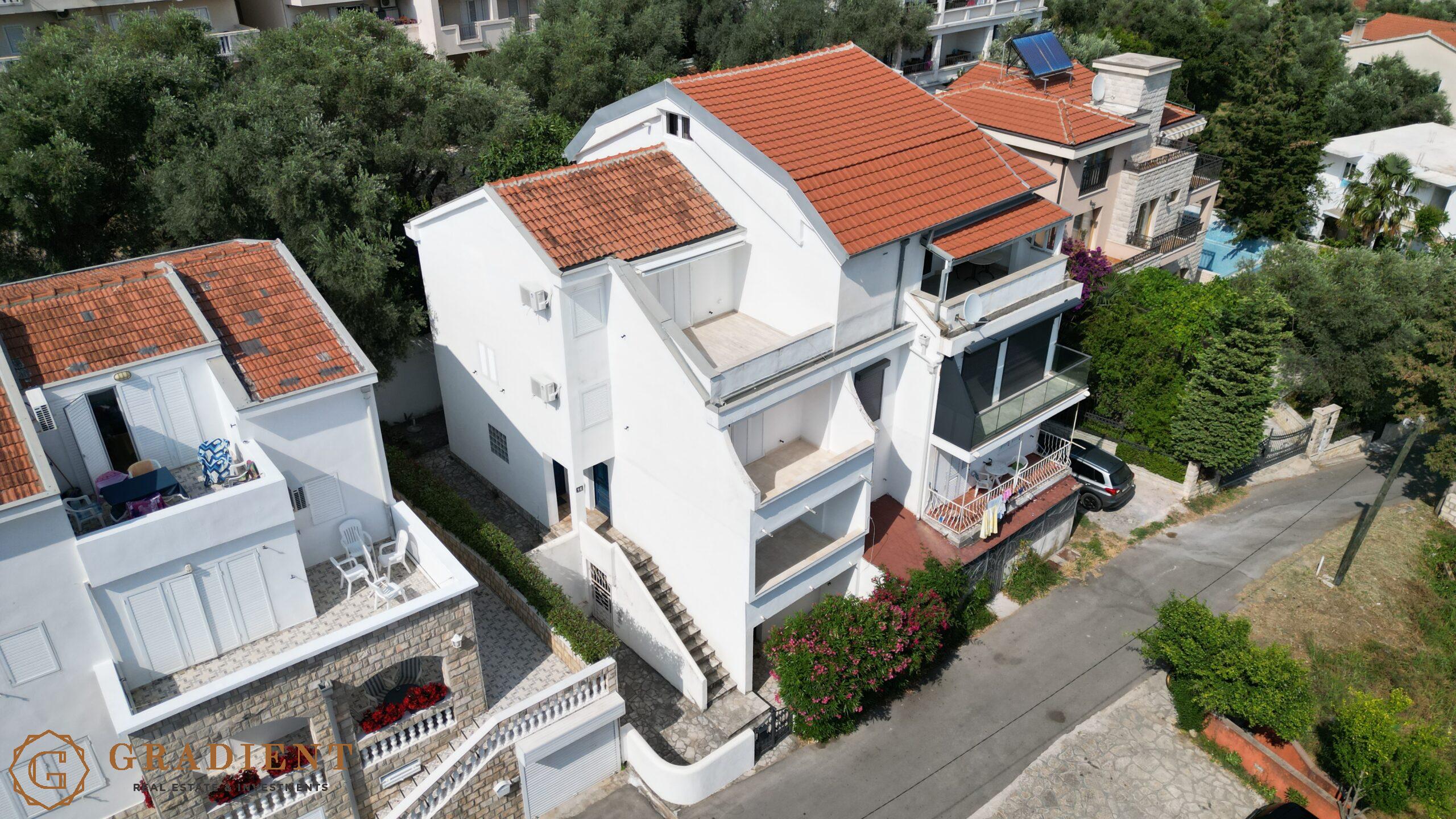 The house consists of a ground floor and three upper levels. Two residential units, connected by an internal staircase, are included in the sale. The second floor features a spacious one-bedroom apartment of 55 m², while the third floor hosts a similar apartment of 50 m². Both units come with terraces that offer a beautiful view of the sea — perfect for a morning coffee or unwinding at sunset. Fully furnished and thoughtfully laid out, each apartment includes a living room with a dining area and kitchen, a bedroom, and a bathroom — making them ideal for living or as a rental investment.
