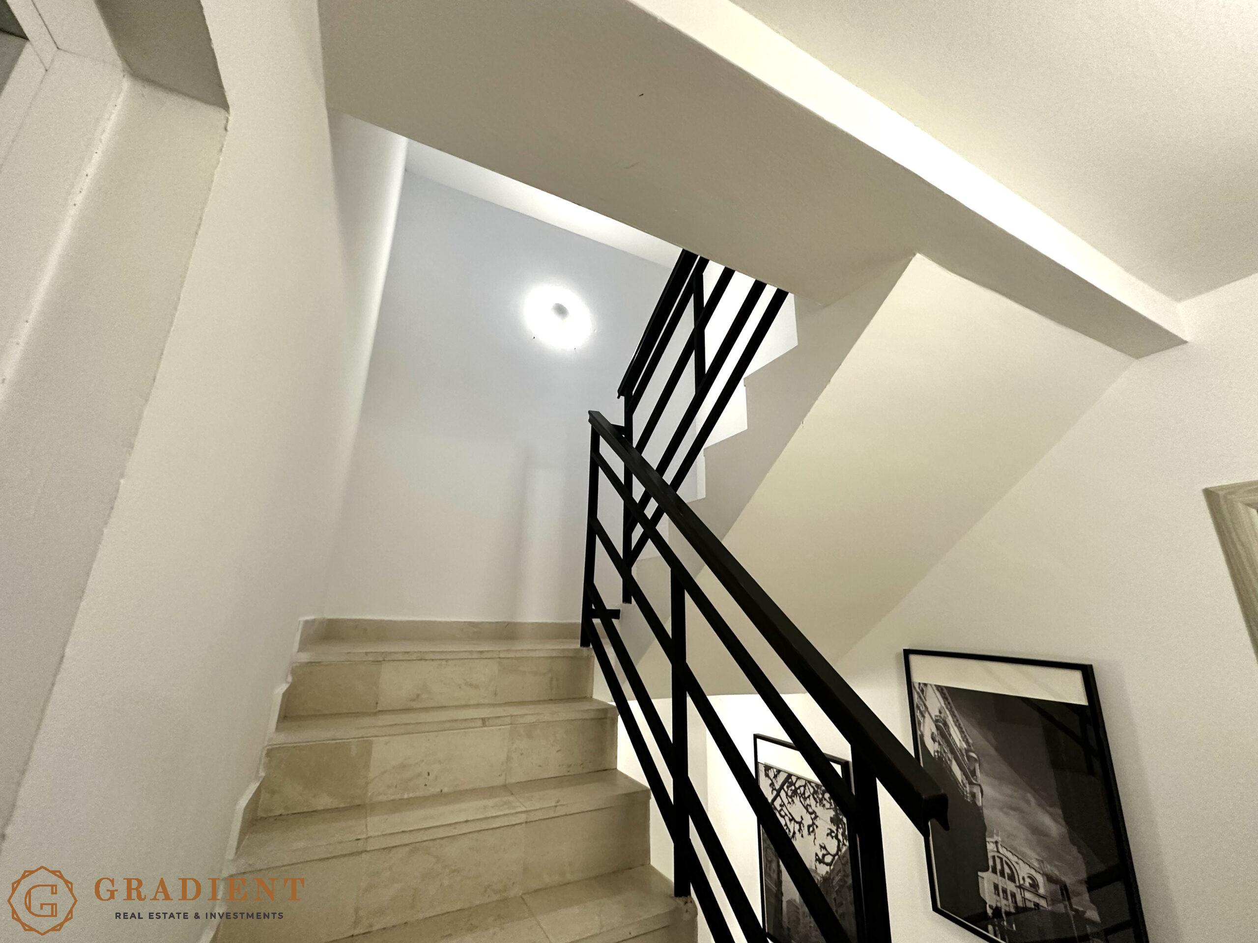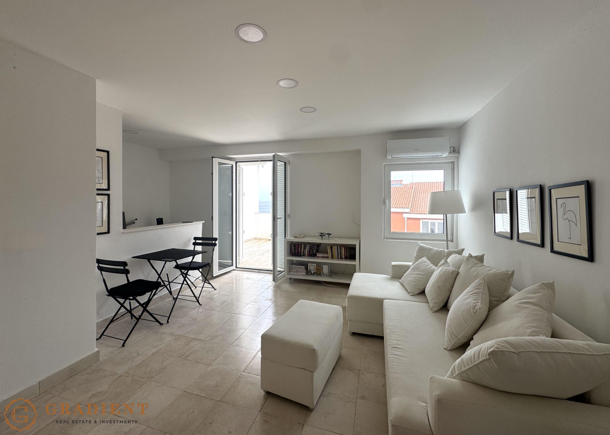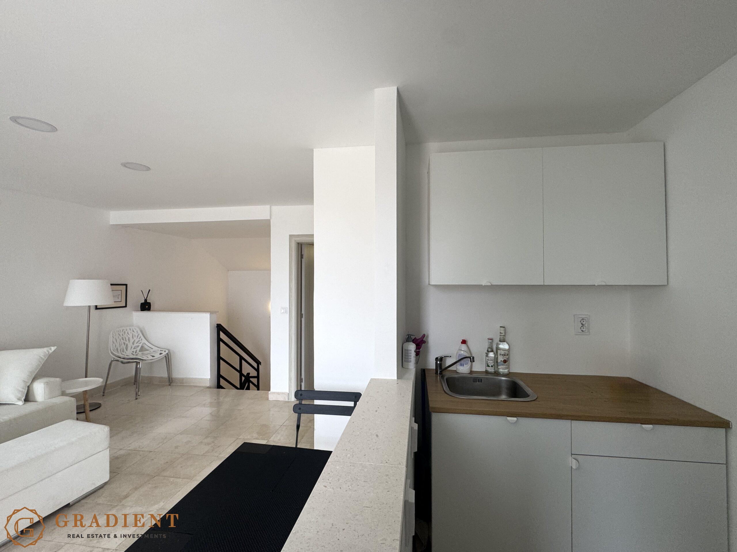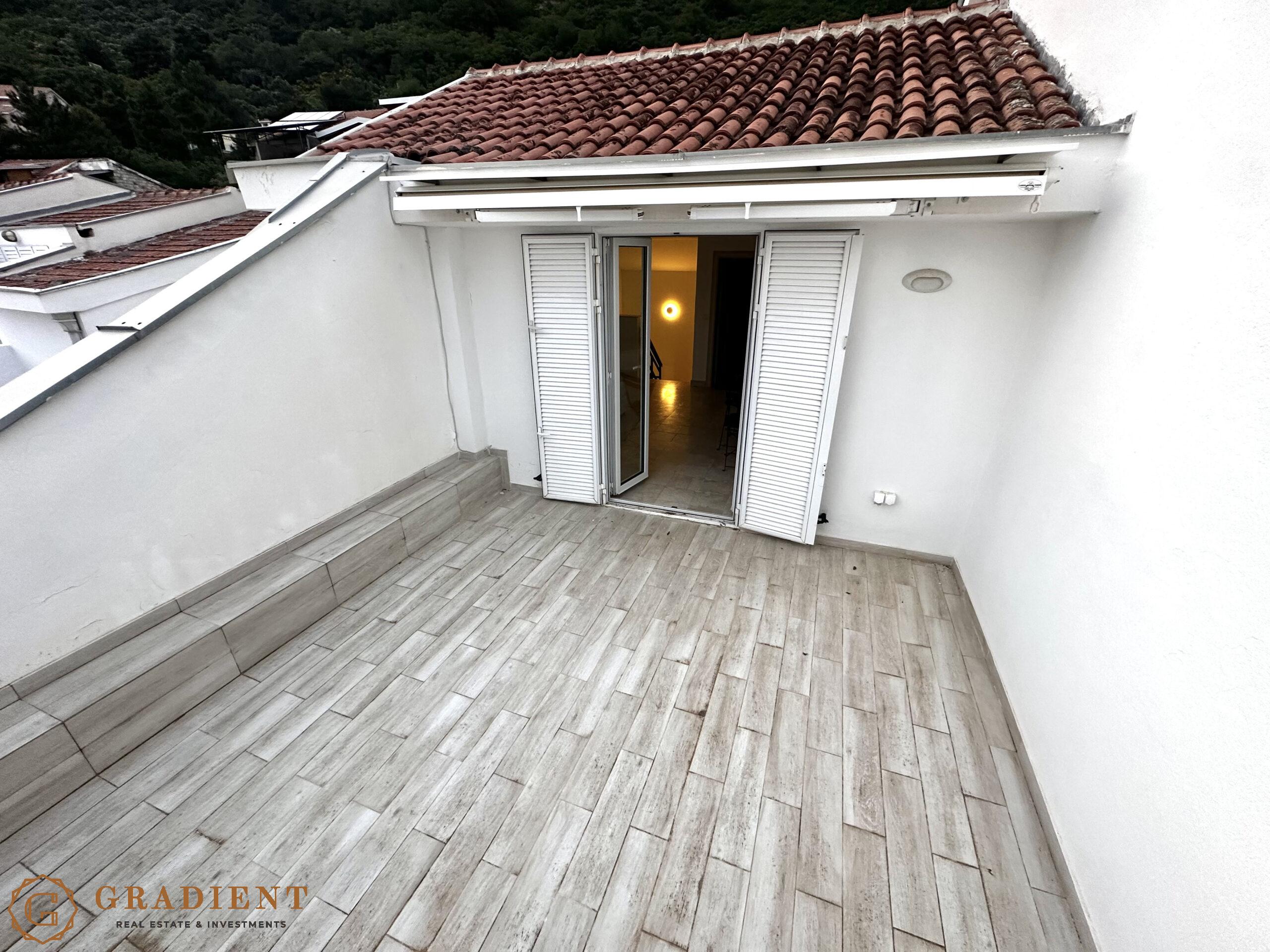 The house consists of a ground floor and three upper levels. Two residential units, connected by an internal staircase, are included in the sale. The second floor features a spacious one-bedroom apartment of 55 m², while the third floor hosts a similar apartment of 50 m². Both units come with terraces that offer a beautiful view of the sea — perfect for a morning coffee or unwinding at sunset. Fully furnished and thoughtfully laid out, each apartment includes a living room with a dining area and kitchen, a bedroom, and a bathroom — making them ideal for living or as a rental investment.
