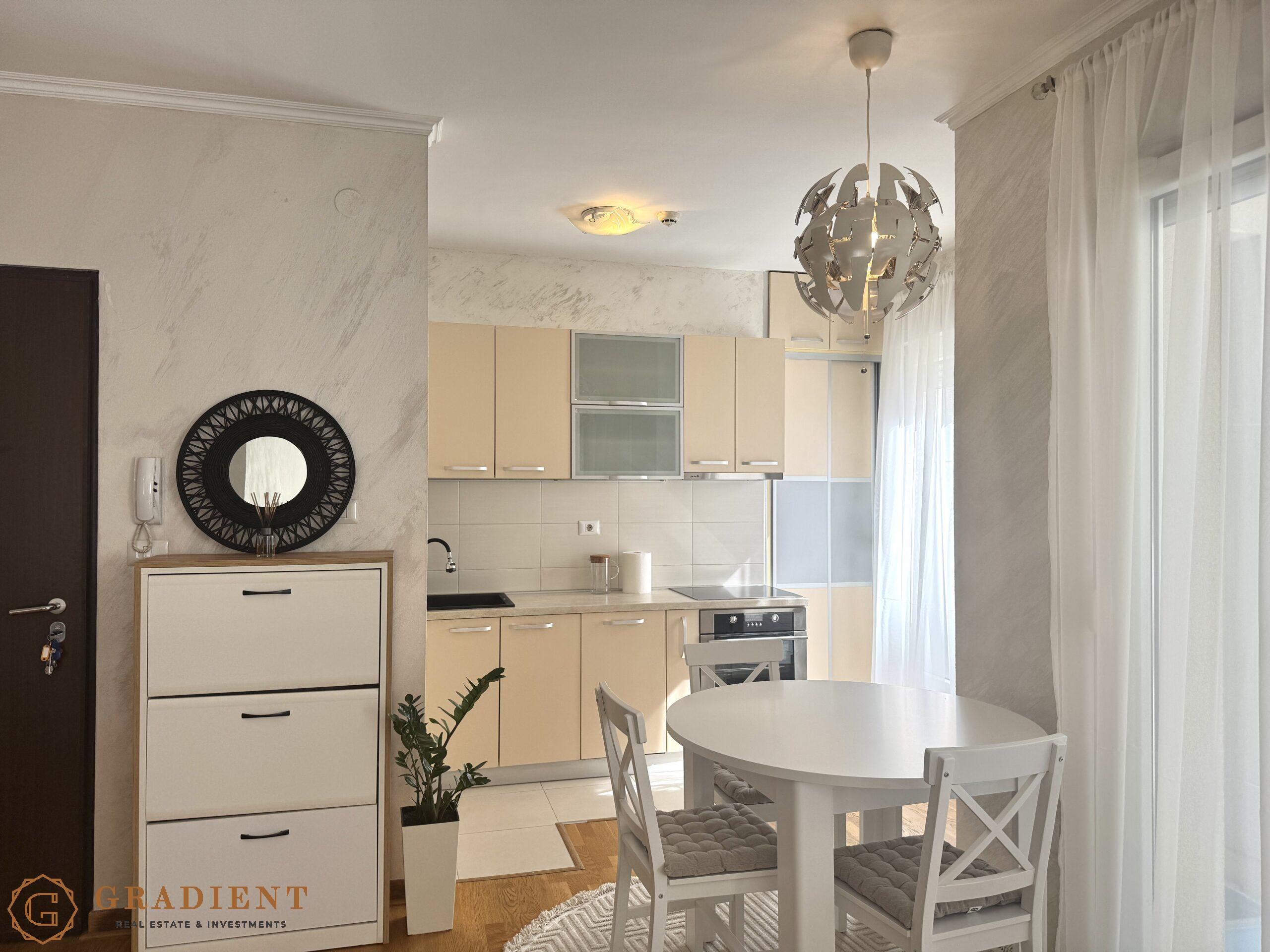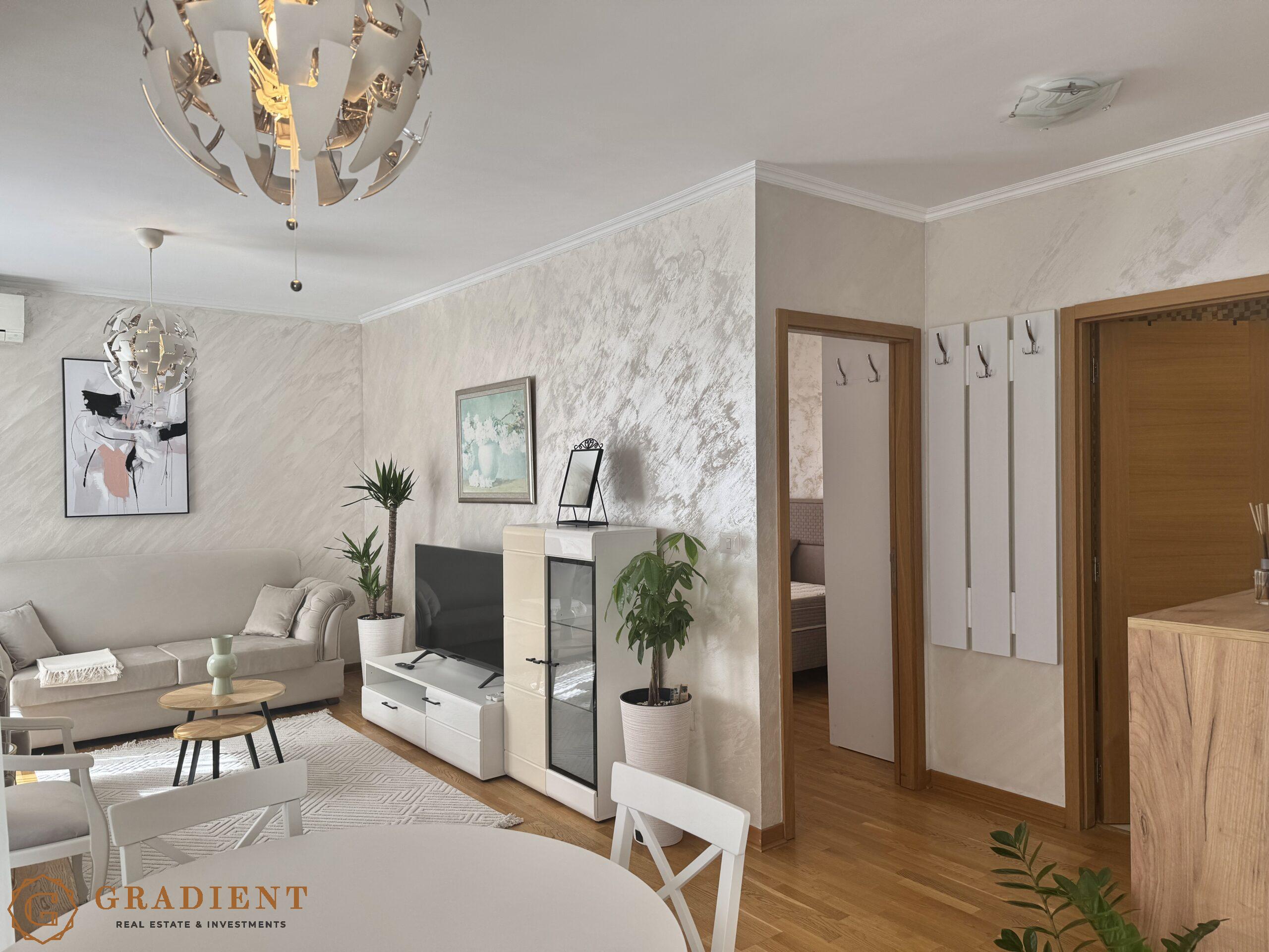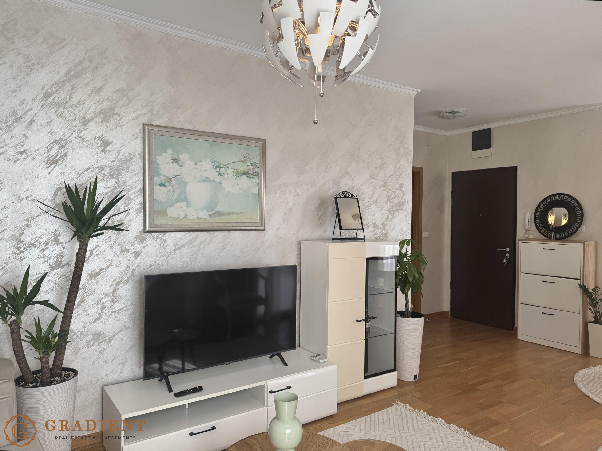 Located in the very heart of City Kvart, Podgorica’s most sought-after residential area, this fully furnished and spacious one-bedroom apartment offers a perfect blend of comfort, functionality, and modern aesthetics. Positioned on the first floor of a building with an elevator, it provides everything needed for a pleasant and high-quality lifestyle.