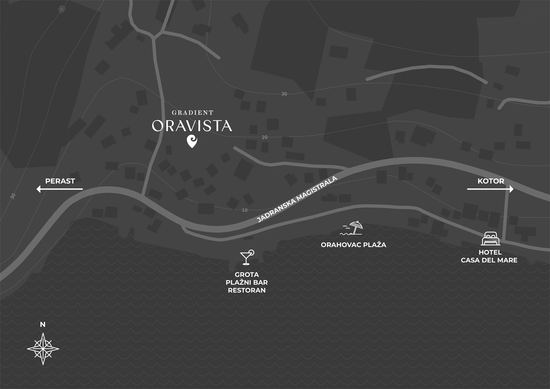 Orahovac je poznat po kristalno čistom moru, mirnom ambijentu i fantastičnom pogledu na zaliv. Smješten u UNESCO-om zaštićenom području, Oravista pruža harmoniju prirode i istorijskog nasljeđa. Kompleks je udaljen svega 100 metara od mora, idealno pozicioniran za sve koji traže osjećaj stalne povezanosti s prirodom.