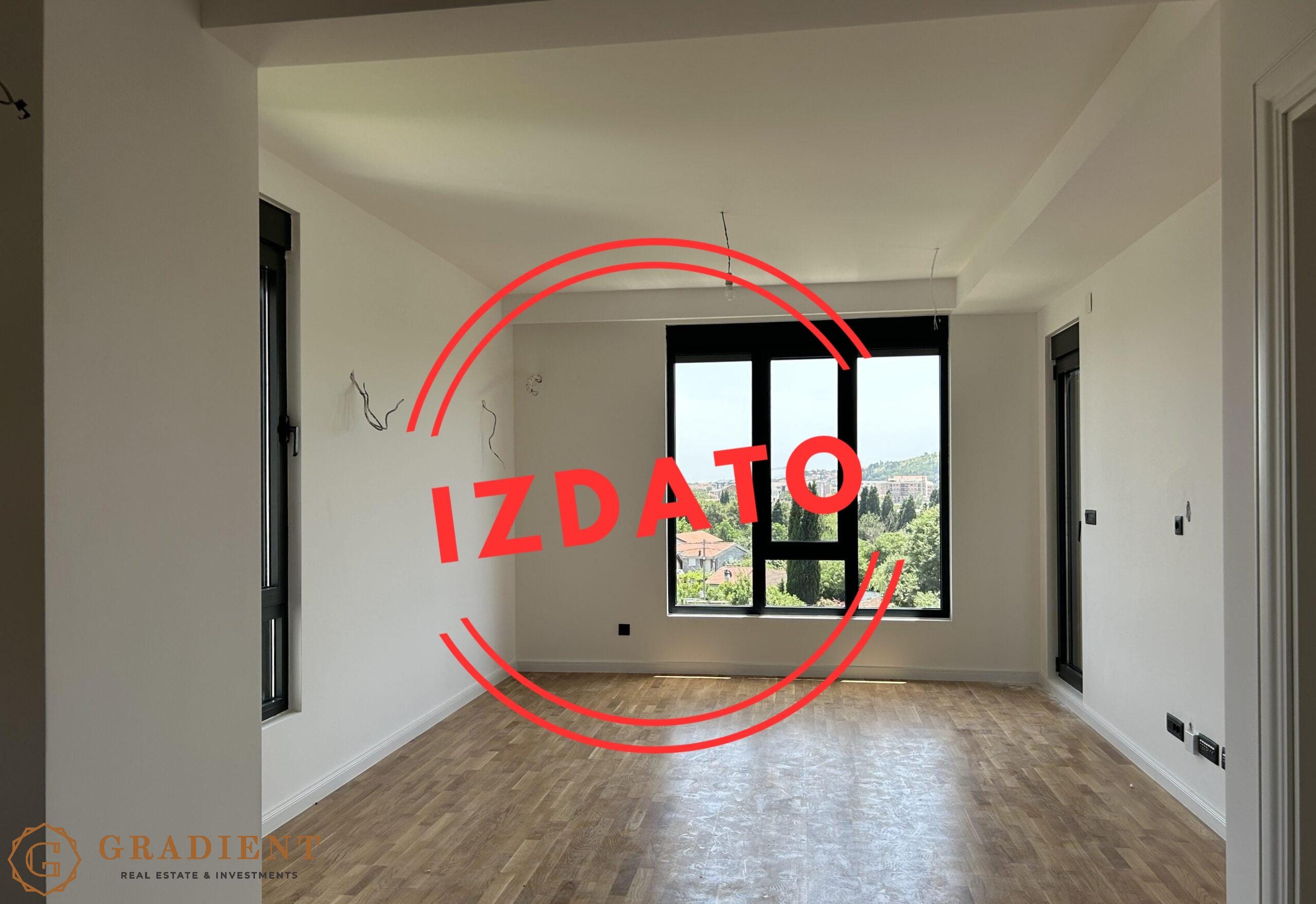 U modernoj nedavno završenoj zgradi Gradient Homes na Zabjelu, izdajemo potpuno nov, neuseljavan jednosoban stan…